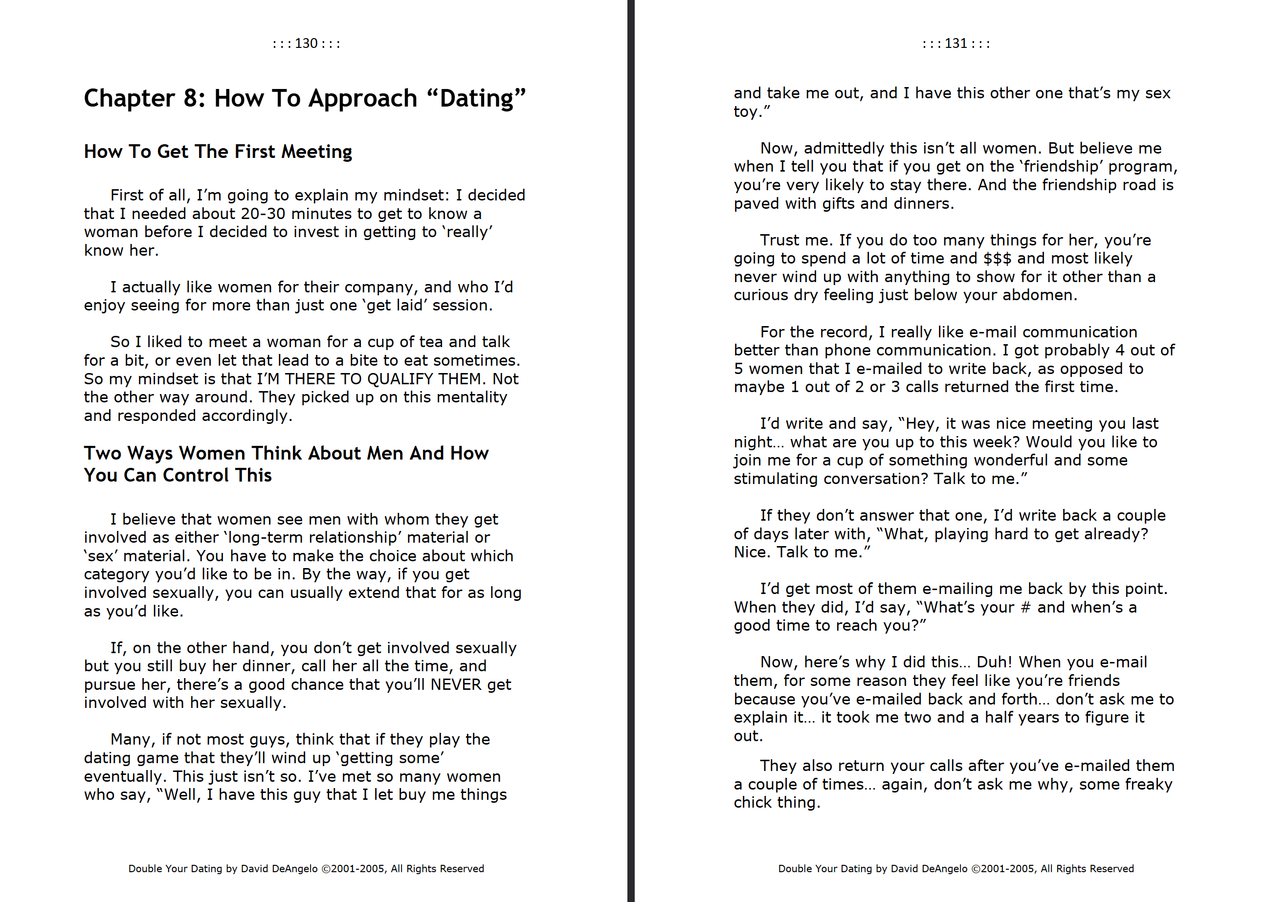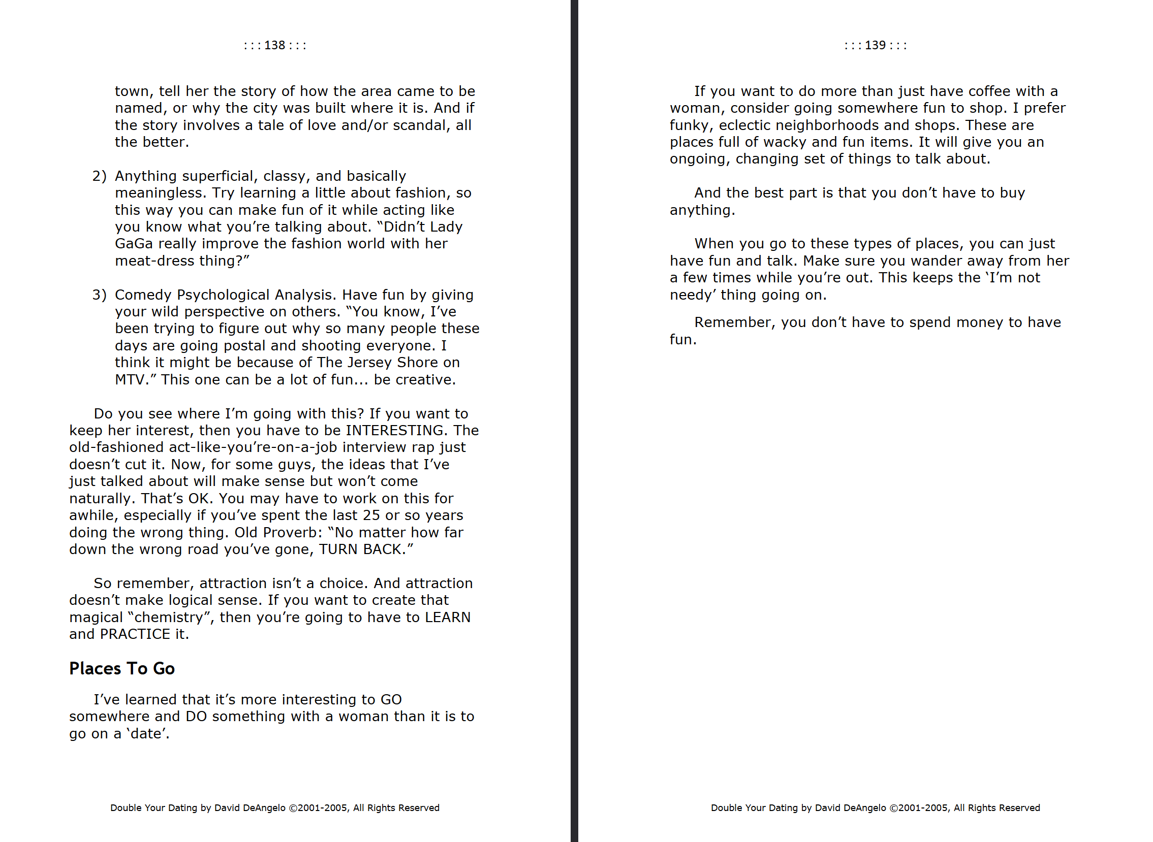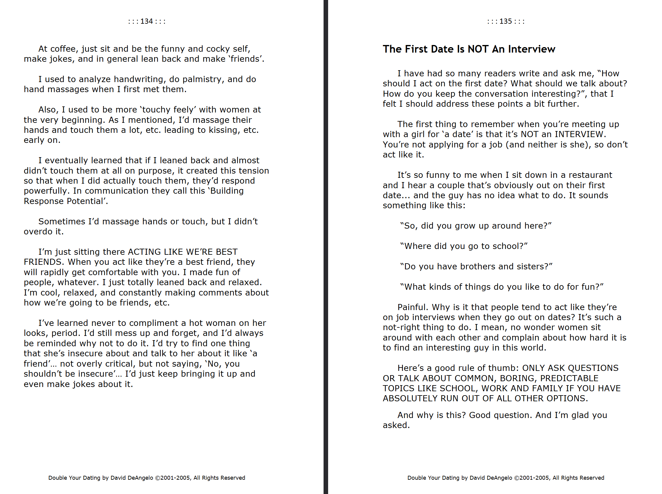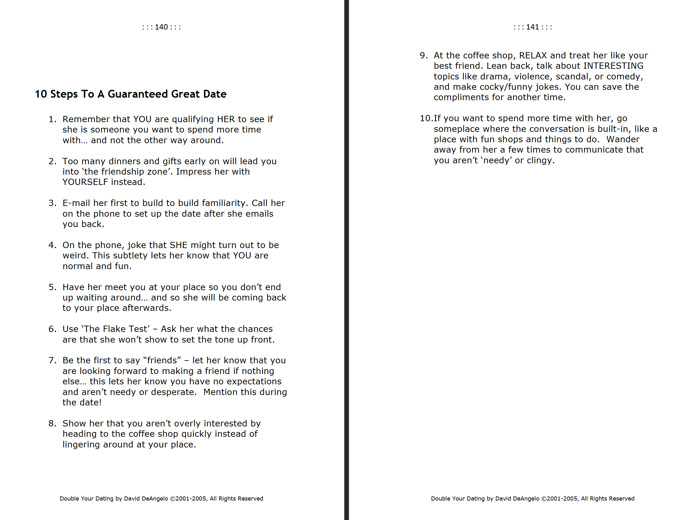- Double Your Dating by David DeAngelo (She said yes to the date! Now what?)