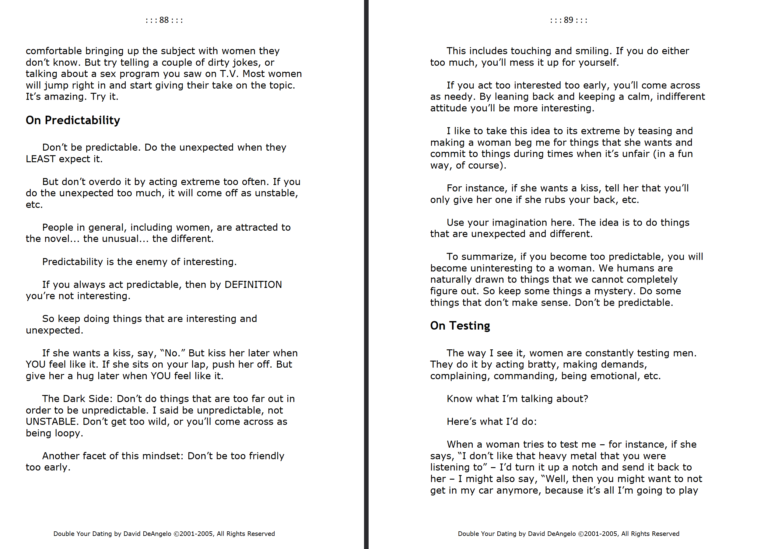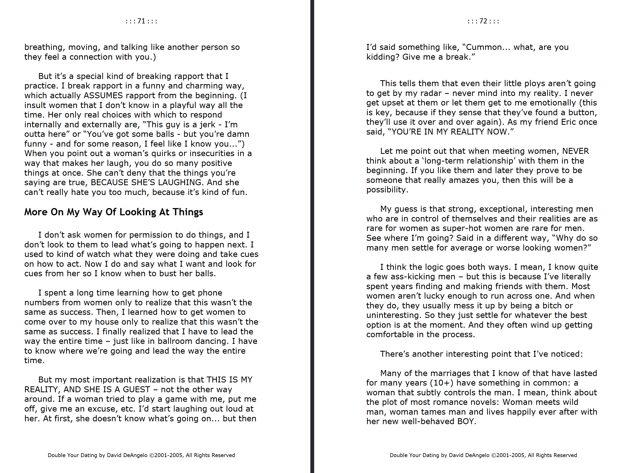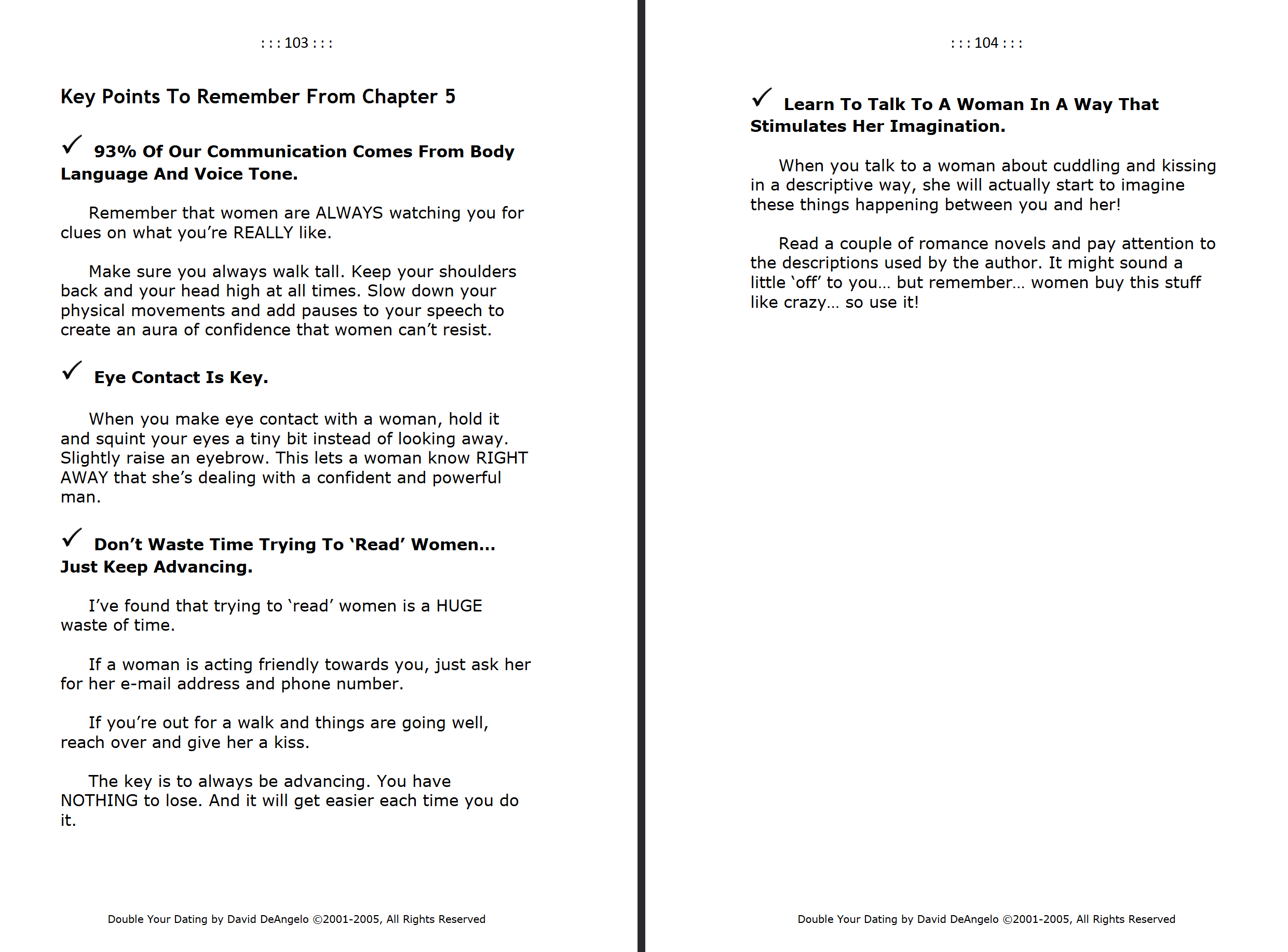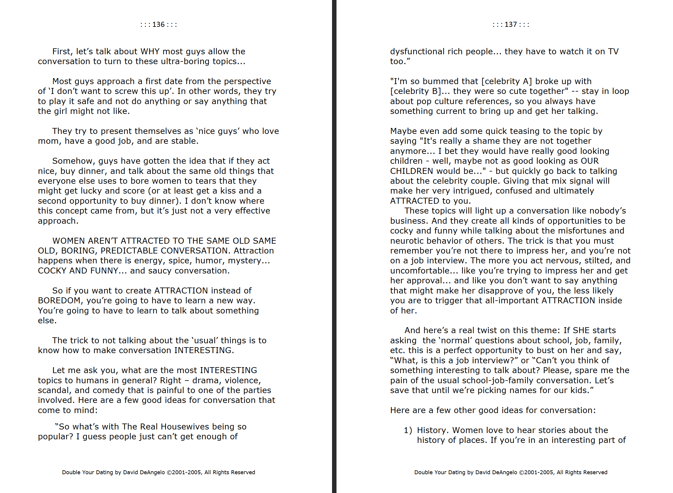 - Double Your Dating by David DeAngelo (She said yes to the date! Now what?)