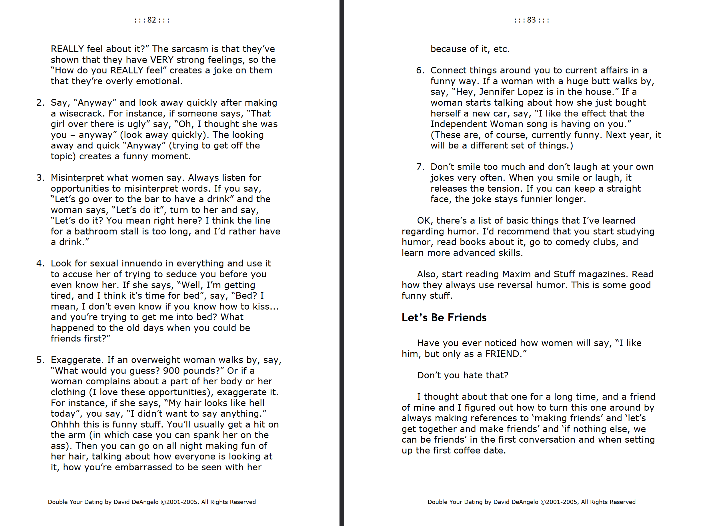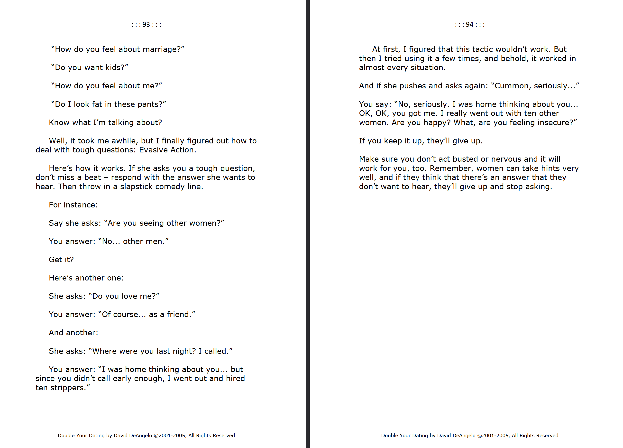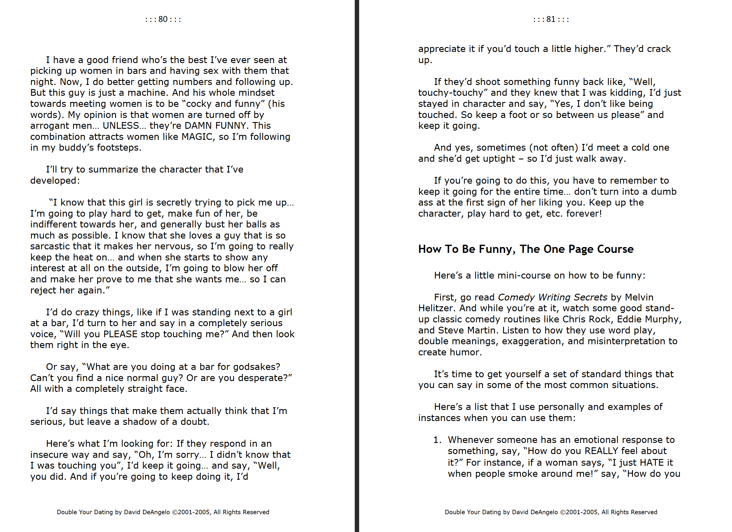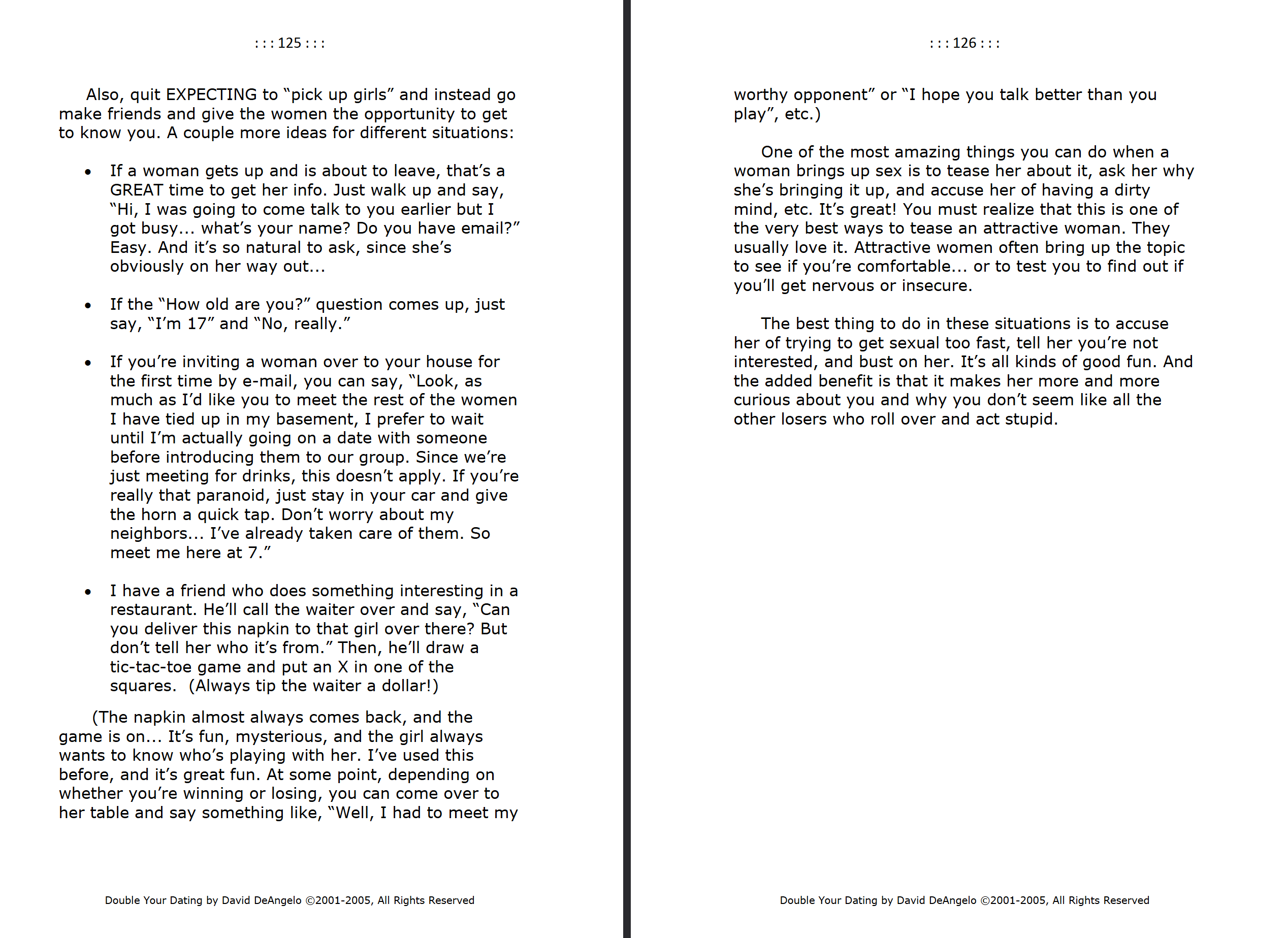 - Double Your Dating by David DeAngelo (She said yes to the date! Now what?)